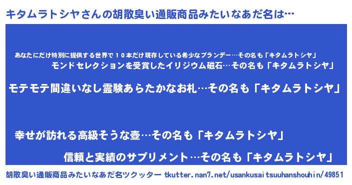 | ヒーロー風カッコイイあだ名 | 『スーパーキタムラトシヤ』 |
