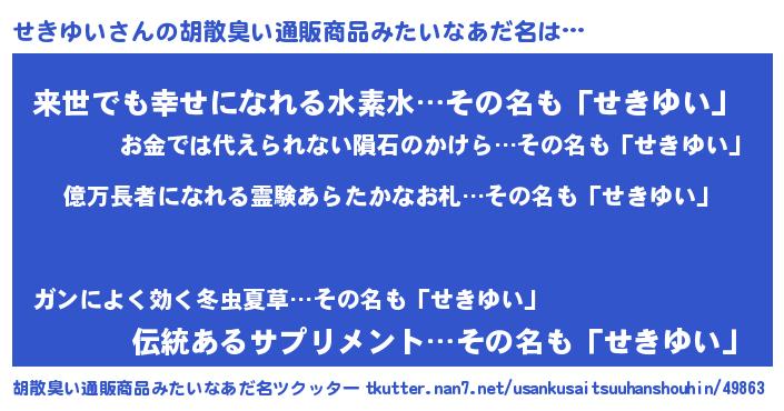 | 意味不明あだ名 | 『ペロリンせきゆい』『永久保存せきゆい』 |