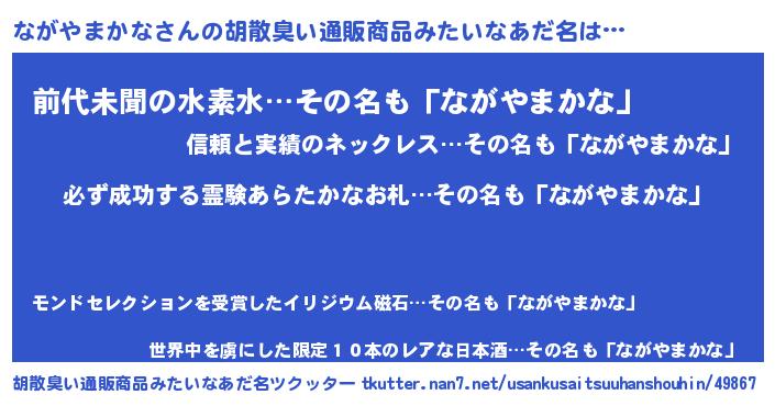 | ヘコむあだ名 | 『ながっふぃ~』『ながやまかな(笑)』 |