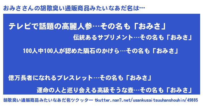 | 意味不明あだ名 | 『眠気覚ましガムおみさ味』『自称おみさ』 |