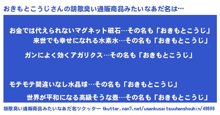 | 肩書あだ名 | 『おきもとこうじ閣下』 |