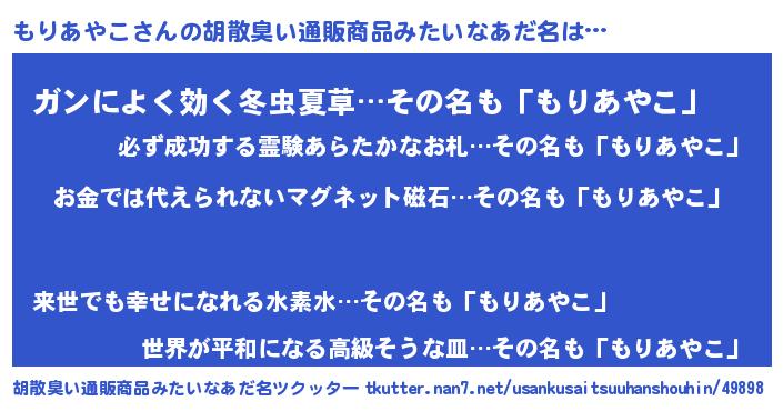 | ヘコむあだ名 | 『豆乳』『もりふぇ~』『もりぷりん』 |