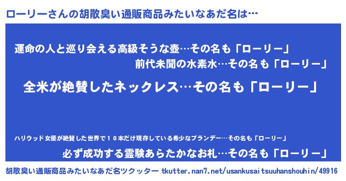 | 意味不明あだ名 | 『とにかく怪しいローリー』 |