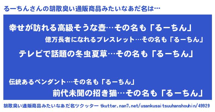 | 男性向けラノベタイトル風あだ名 | 『転生したらるーちんだった件』 |