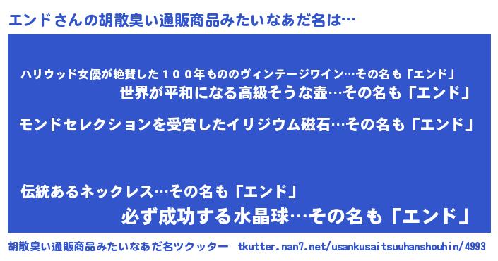| ヒーロー風カッコイイあだ名 | 『天空の使者エンド』『仮面エンダー』 |