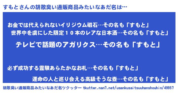 | ヘコむあだ名 | 『なまこ酢』『すもにー』『すもお』 |
