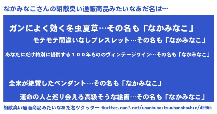 | 恥ずかしいあだ名 | 『ナカミナコデラックス』『なかっちょ』 |