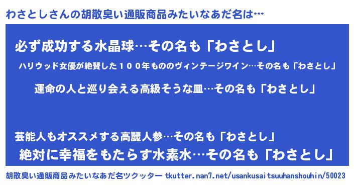 | 肩書あだ名 | 『わさとし国家主席』『わさとし御曹司』 |