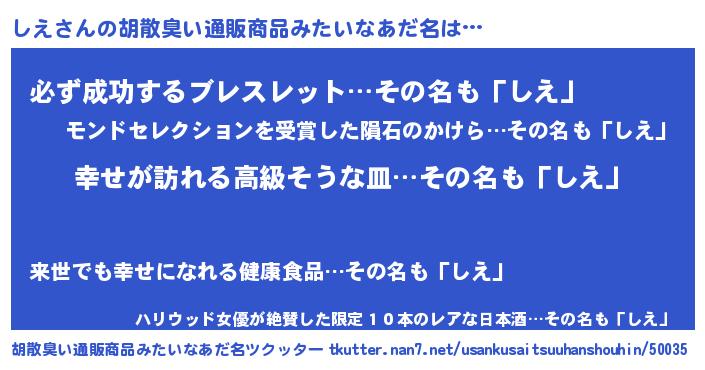 | ヘコむあだ名 | 『つくし』『しえにー』『しえ太郎』 |