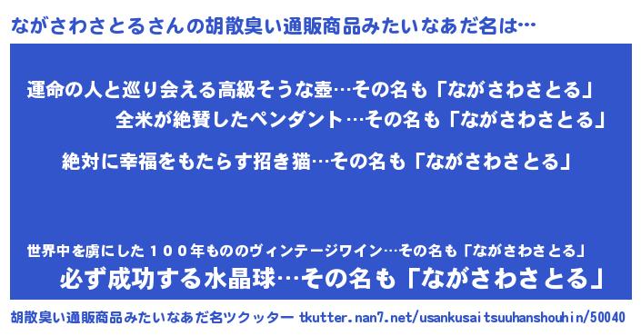 | 意味不明あだ名 | 『永久保存ながさわさとる』 |