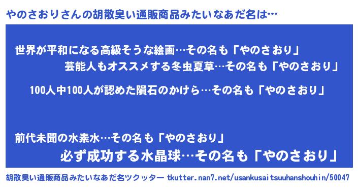 | 男性向けラノベタイトル風あだ名 | 『おまえをオタクにしてやるから、俺をやのさおりにしてくれ! 』 |