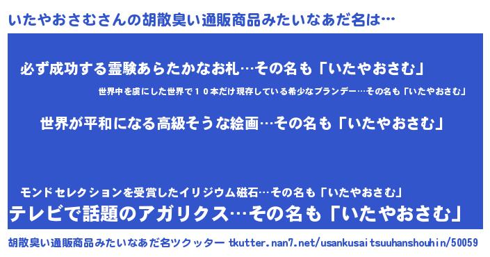 | ファンタジー風あだ名 | 『エターナルイタヤオサムー』 |