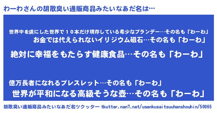| ヘコむあだ名 | 『わーわ(爆)』『なまこ酢』 |
