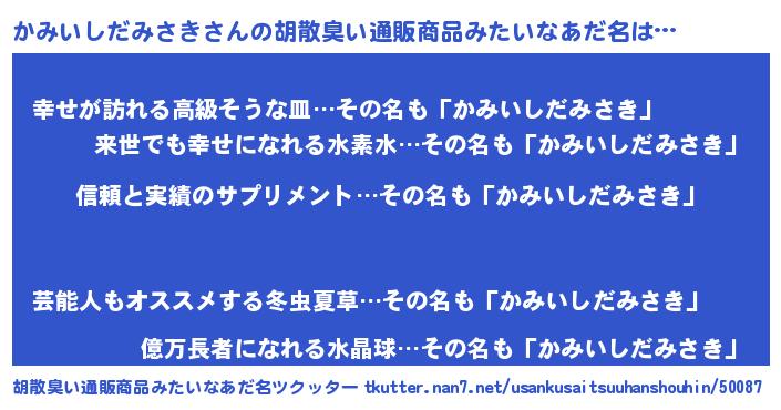 | 欧米人風あだ名 | 『ウサインかみいしだみさき』 |