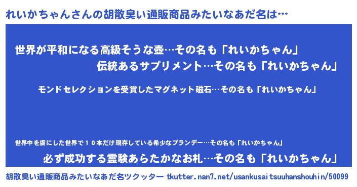 | 意味不明あだ名 | 『眠気覚ましガムれいかちゃん味』 |