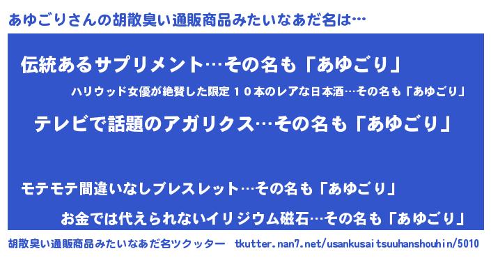 | ヘコむあだ名 | 『あゆっ子』『あゆにー』『なまこ酢』 |