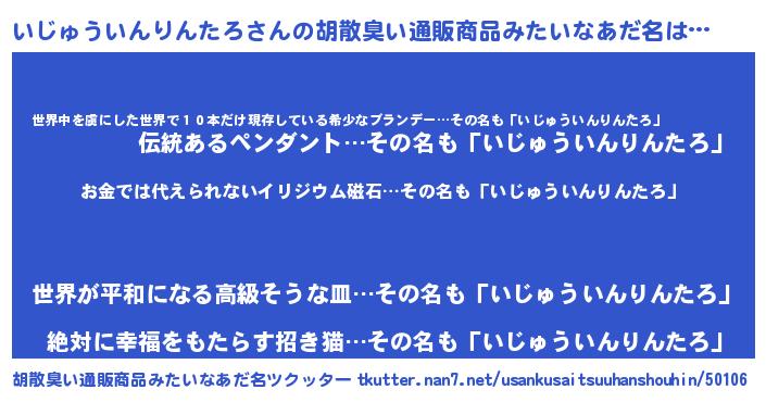 | ヘコむあだ名 | 『いじゅういんりんたろ(爆)』『いじを』 |