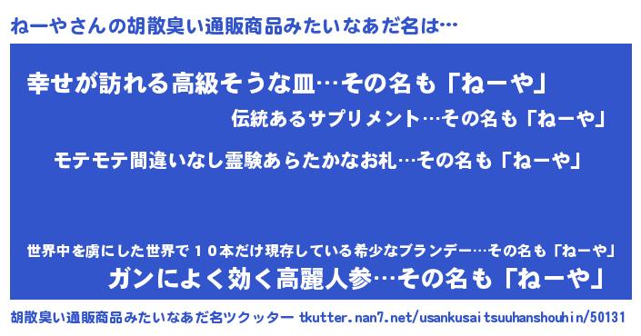 | 意味不明あだ名 | 『ペロリンねーや』『ねーやフォーエバー』 |