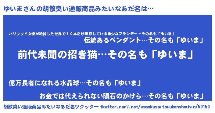 | 意味不明あだ名 | 『永久保存ゆいま』『なめこ科ゆいま属』 |