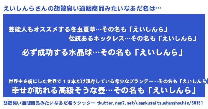 | ヒーロー風カッコイイあだ名 | 『スーパーエイシンラ』『魔戒騎士エイ』 |