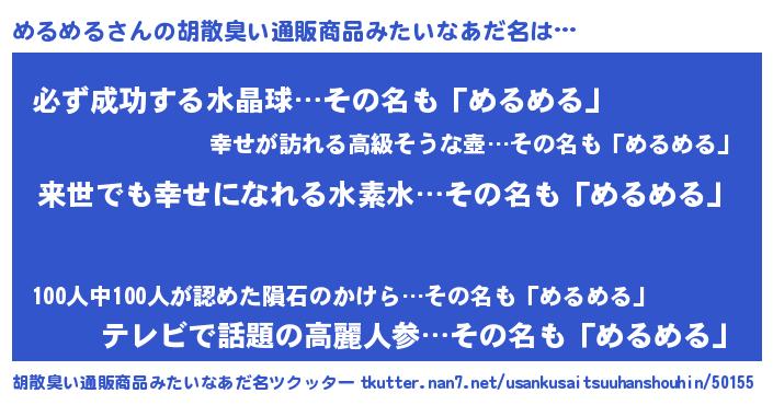 | 意味不明あだ名 | 『永久保存めるめる』『ペロリンめるめる』 |