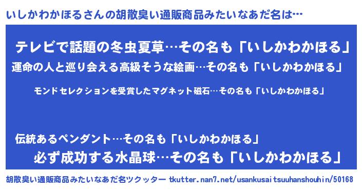 | ヒーロー風カッコイイあだ名 | 『慈愛の使者いしかわかほる』 |