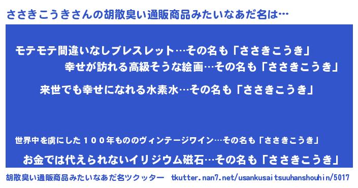 | 意味不明あだ名 | 『永久保存ささきこうき』 |