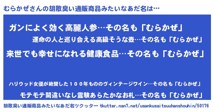 | 意味不明あだ名 | 『永久保存むらかぜ』『自称むらかぜ』 |