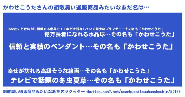 | ポケモン風あだ名 | 『メロカッワ』『ヒカワセコウタ』 |