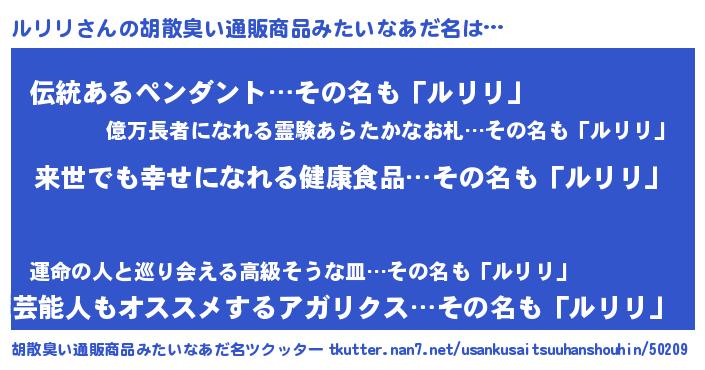 | 意味不明あだ名 | 『永久保存ルリリ』『自称ルリリ』 |