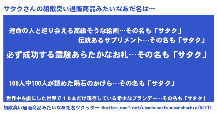 | 意味不明あだ名 | 『ペロリンサタク』『サタクフォーエバー』 |