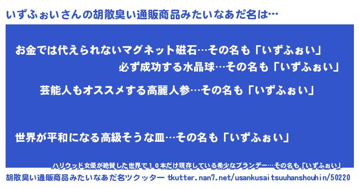 | 意味不明あだ名 | 『自称いずふぉい』『ペロリンいずふぉい』 |