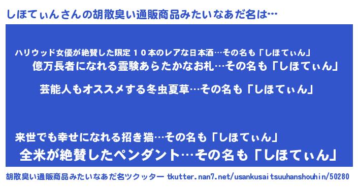 | 意味不明あだ名 | 『自称しほてぃん』『ペロリンしほてぃん』 |