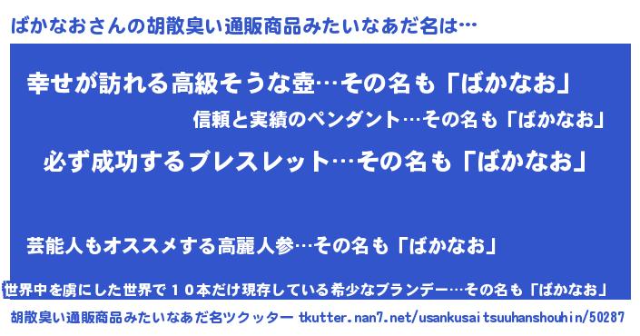 | 男性向けラノベタイトル風あだ名 | 『ばかなおの憂鬱』『魔弾の王とばかなお』 |
