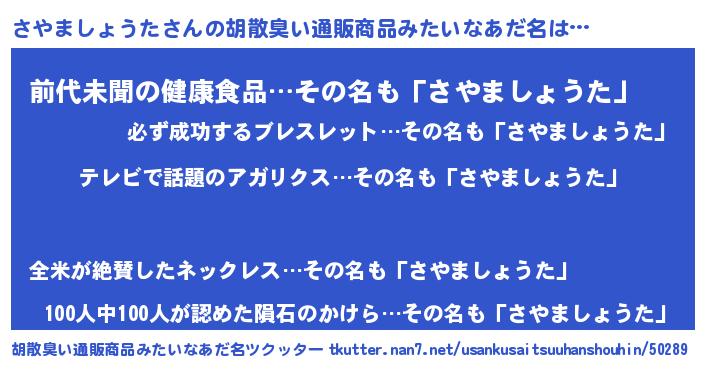 | 意味不明あだ名 | 『自称さやましょうた』 |
