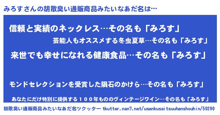 | 意味不明あだ名 | 『永久保存みろす』『自称みろす』 |