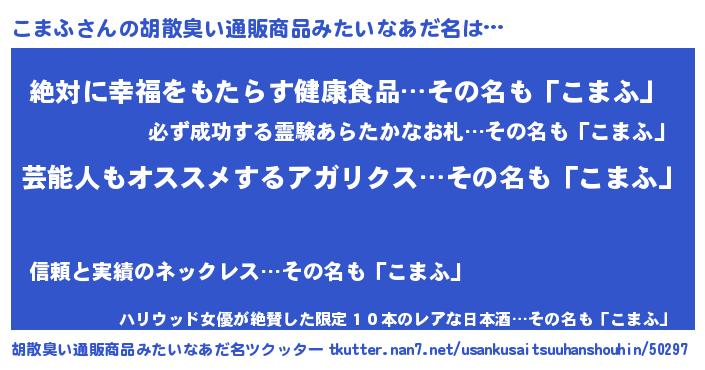 | 意味不明あだ名 | 『自称こまふ』『永久保存こまふ』 |
