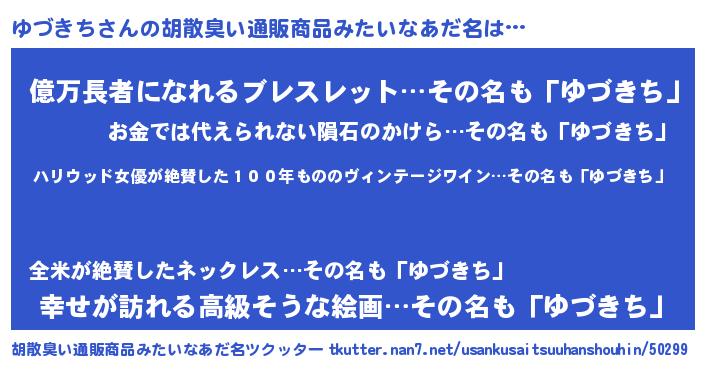 | ヘコむあだ名 | 『ゆづふぇ~』『酢こんぶ』『ゆづを』 |