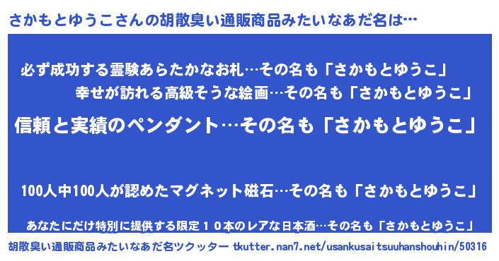 | 意味不明あだ名 | 『とにかく怪しいさかもとゆうこ』 |