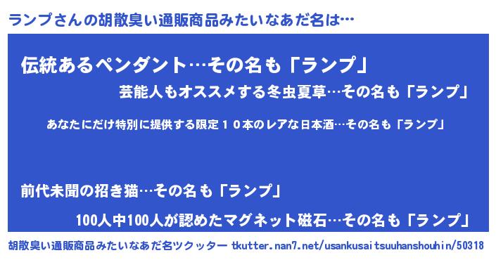 | 意味不明あだ名 | 『ヨモギ科ランプ属』『自称ランプ』 |