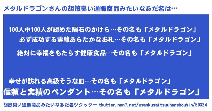| 意味不明あだ名 | 『永久保存メタルドラゴン』 |