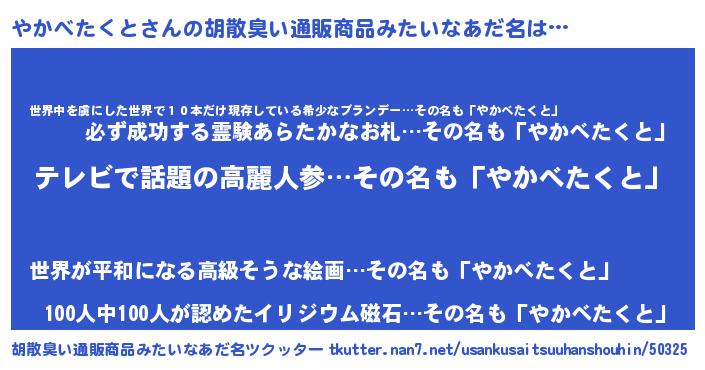 | 男性向けラノベタイトル風あだ名 | 『はたらくやかべたくとさま!』 |