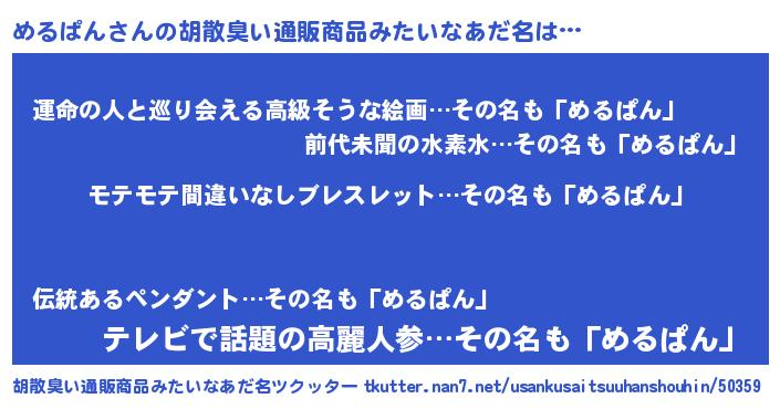 | ヒーロー風カッコイイあだ名 | 『スーパーメルパン』『究極戦士メルパン』 |