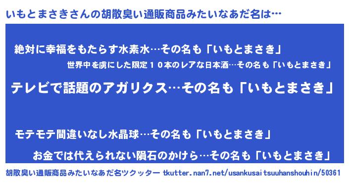 | 可愛いあだ名 | 『いもうちぇる』『いもとまさきママ』 |