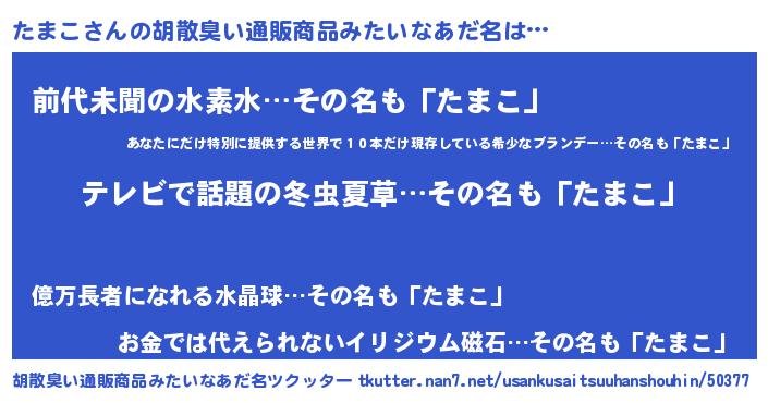 | 欧米人風あだ名 | 『ケンブリッジたまこ』『ダニエルたまこ』 |