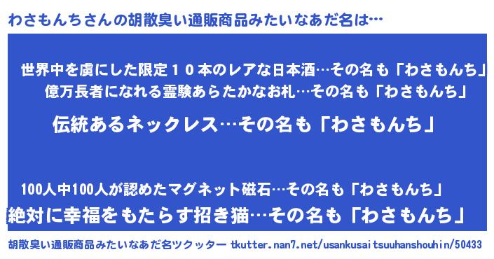 | 意味不明あだ名 | 『とにかく怪しいわさもんち』 |
