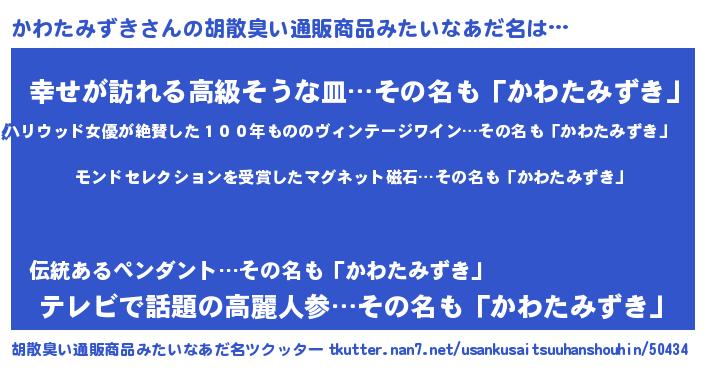 | 意味不明あだ名 | 『眠気覚ましガムかわたみずき味』 |