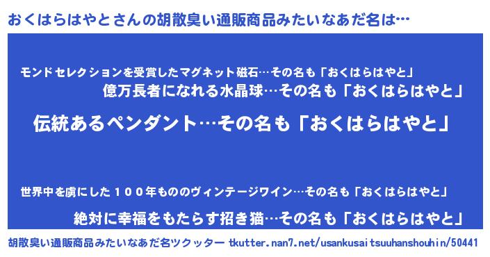 | 欧米人風あだ名 | 『アンジェラ・おくはらはやと』 |