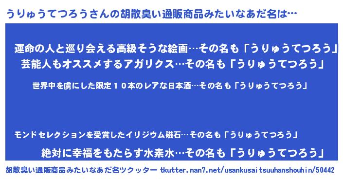 | 意味不明あだ名 | 『住所不定無職うりゅうてつろう(14歳)』 |