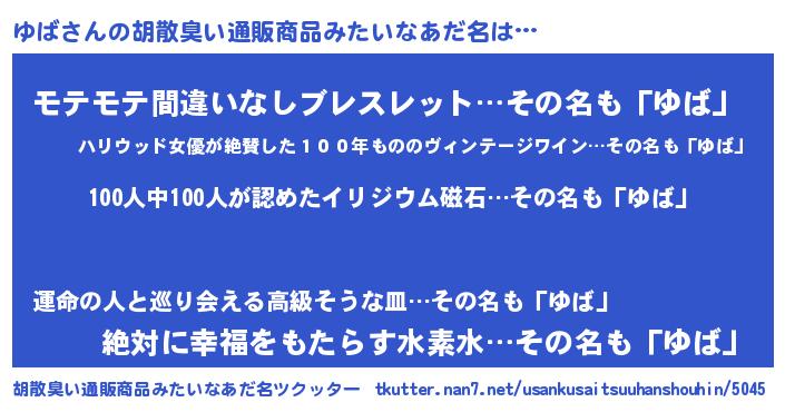 | ヒーロー風カッコイイあだ名 | 『正義の使者ゆば』『スーパーユバ』 |
